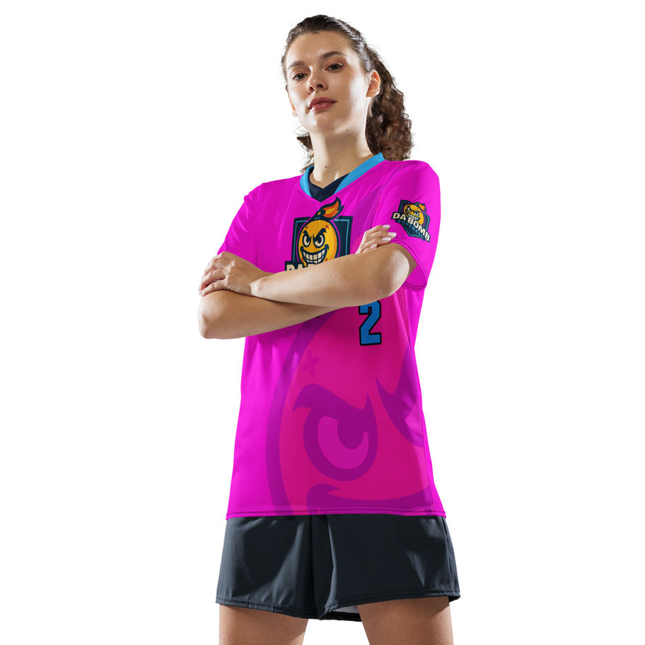 Looking for the perfect sports jersey? We have you covered—made of 100% recycled polyester fabric, this shirt is breathable, moisture-wicking, and has a double-layered v-neck collar that creates a premium look.